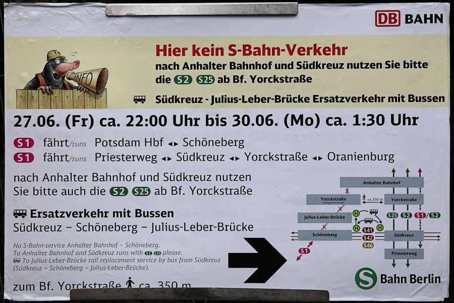 Stattdessen wurde man auf den nahegelegenen S-Bahnhof Yorckstraße verwiesen.