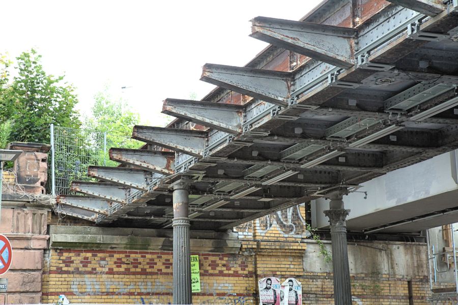... sieht man eine der ältesten „Yorckbrücken“, die in Zukunft den Fußgängern auf dem Weg vom Gleisdreieckpark zur „Schöneberger Schleife“ dienen soll (noch ist sie dafür aber nicht saniert worden).