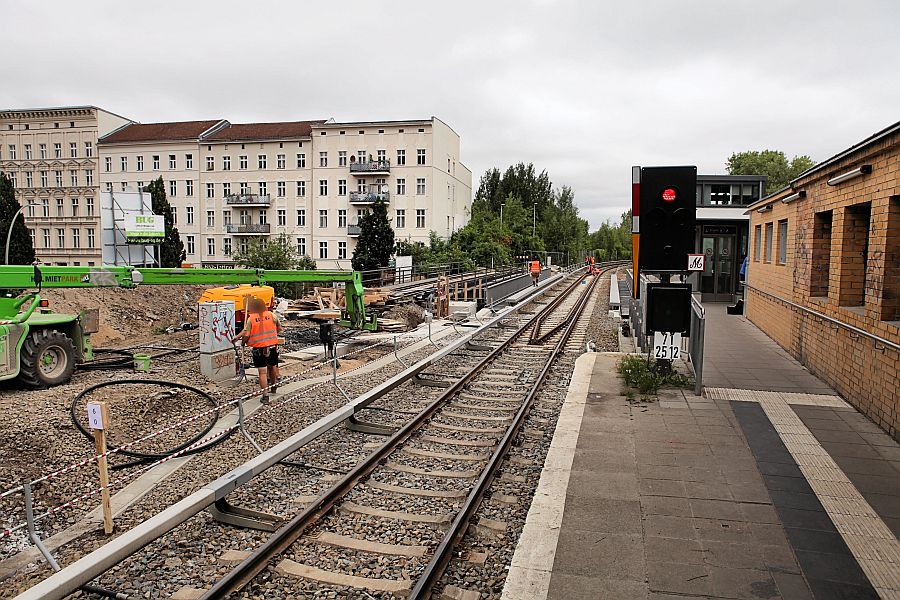 An der Brücke und dem Gleisbett Richtung Potsdam werden noch Restarbeiten erledigt.