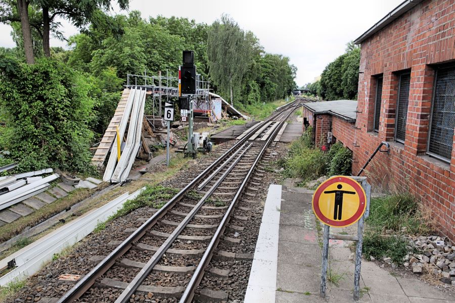 Am alten Gleis wurde schon die Stromschiene niedergelegt.