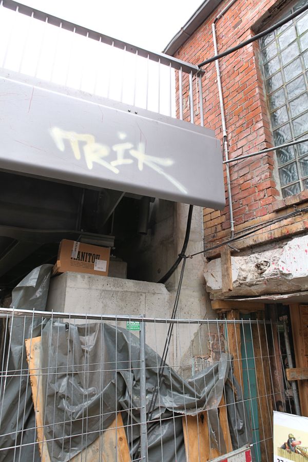Das nördliche Widerlager der neuen Brücke über dem Verbindungsweg zwischen den beiden Hälften der Großgörschenstraße.