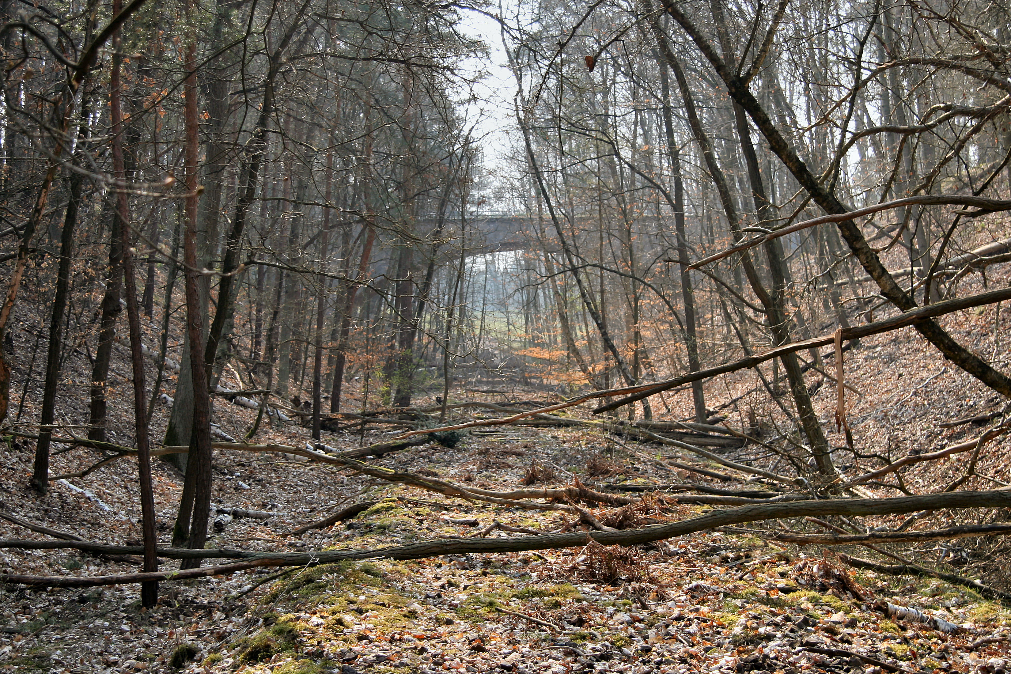 Einige Meter weiter südlich kommt die Brücke des Königswegs über der Eisenbahntrasse in Sicht (