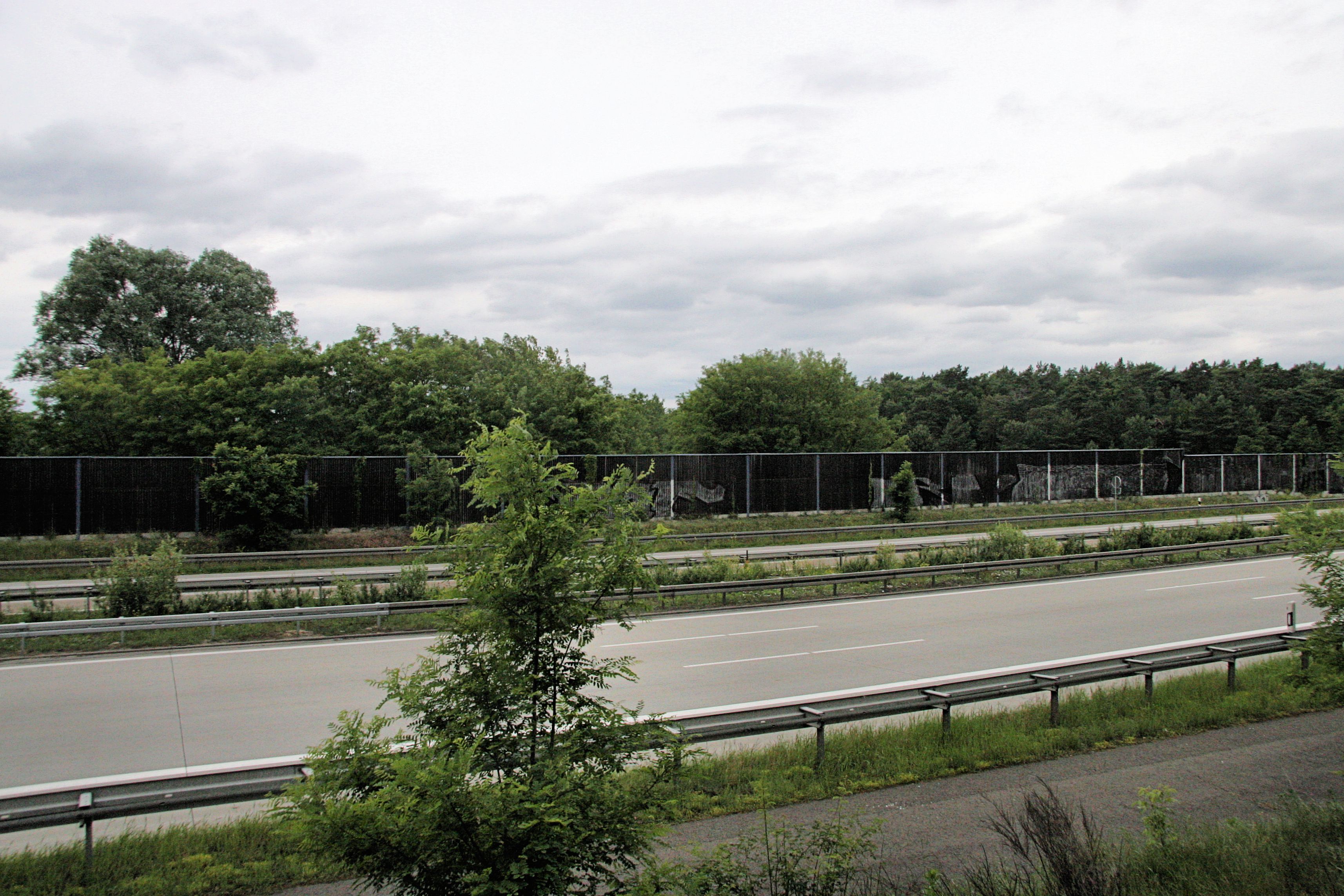 Dies ist der Blick von der anderen Seite der Autobahn auf die Schallschutzwand.