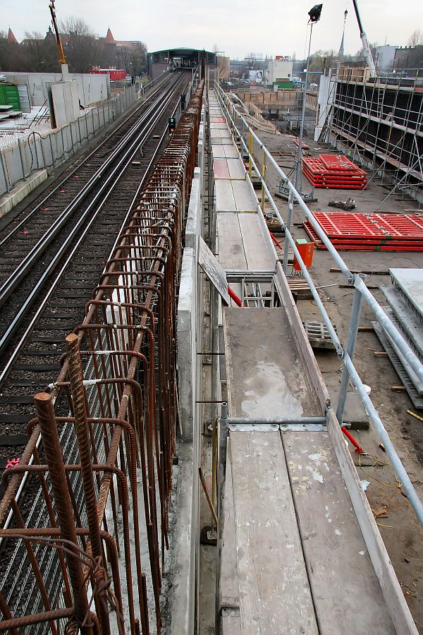 Hier die Wand zwischen der U-Bahntrasse und dem für eine zweite Nord-Süd-S-Bahn freigehaltenen Korridor, auf die sich die Überbauten abstützen werden.