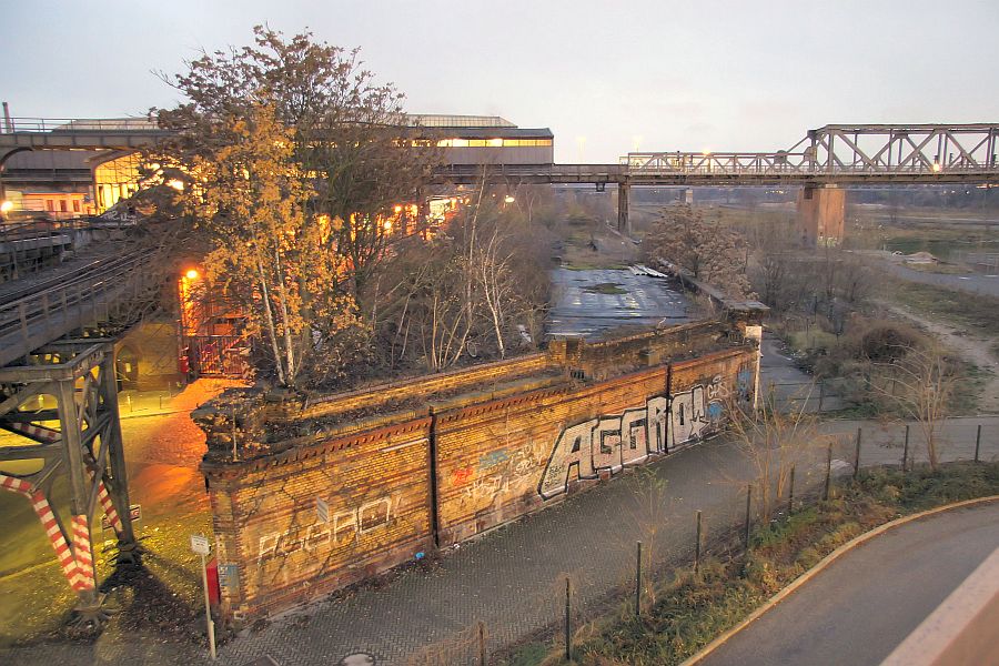Hier die entgegengesetzte Sicht auf den U-Bahnhof Gleisdreieck und das alte S-Bahnviadukt.