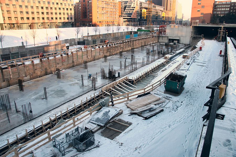 Hier noch einmal ein Blick auf die Baugrube der westlichen Hälfte des Scandic-Hotels.