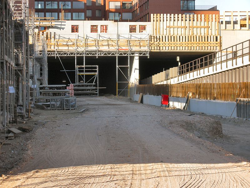 Der temporäre Tunnelmund wird mit dem Aufbauen des Scandic-Hotels Richtung Süden wandern.