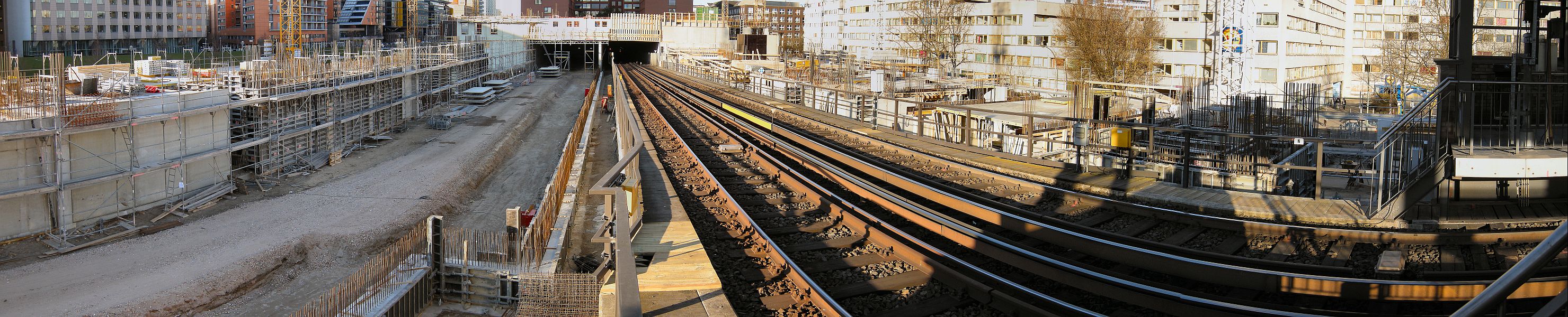 Als Abschluss der Beobachtungen dieses Tages hier ein Panorama der Baustelle vom U-Bahnhof aus gesehen.
