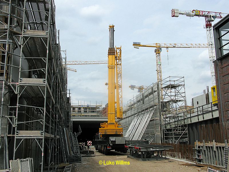 Blick auf die für die S21 freigehaltene Trasse in der Baustelle des Scandic-Hotels (Blickrichtung Norden).