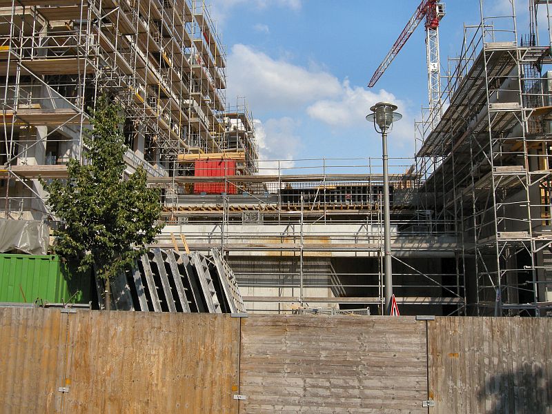 Zwischen dem „The Charleston“ und dem Scandic-Hotel befindet sich ein niedrigerer Gebäudekomplex.
