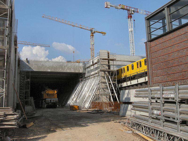 Der provisorische Tunnelmund der S- und U-Bahntrasse rückt immer näher an den U-Bahnhof Mendelssohn-Bartholdy-Park heran.