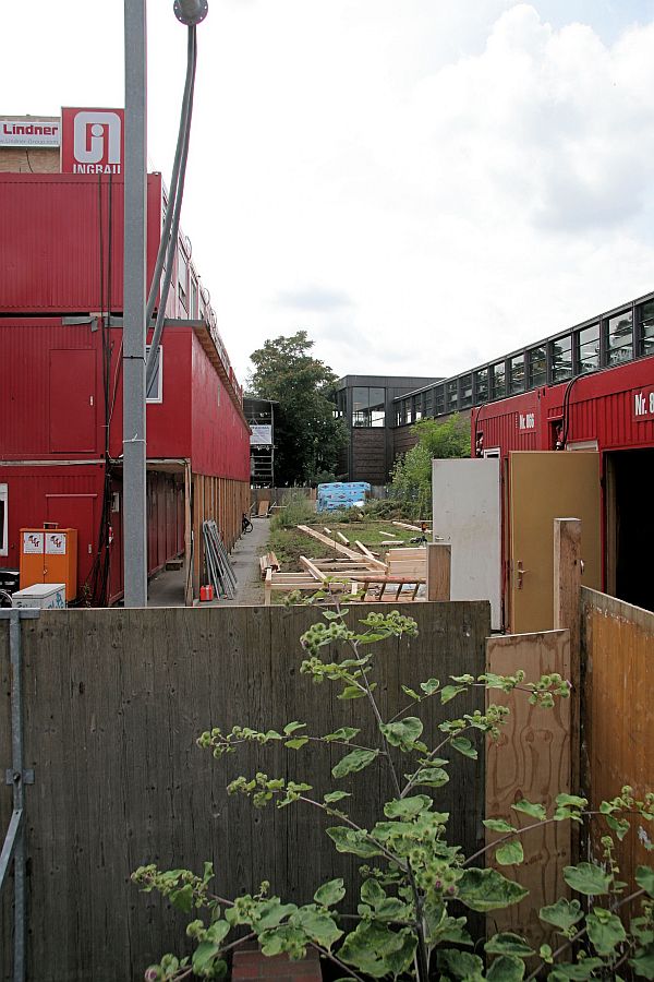 Eine der zwei Containeransammlungen für die Bauarbeiter steht auf der östlichen Seite des Areals des ersten Bauabschnitts.