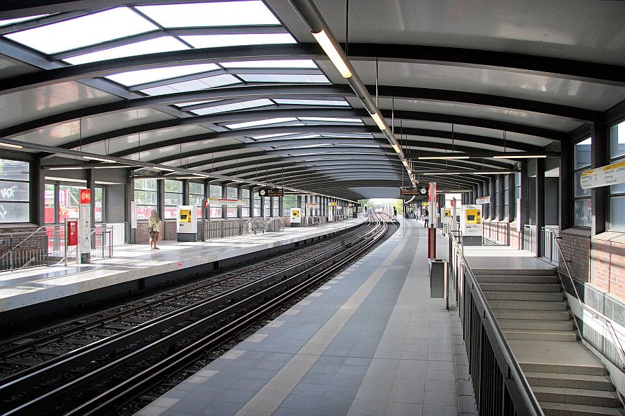 Die Überbauung des U-Bahnhofs Mendelssohn-Bartholdy-Park beeinflusst die Lichtverhältnisse in der Bahnhofshalle nur wenig.