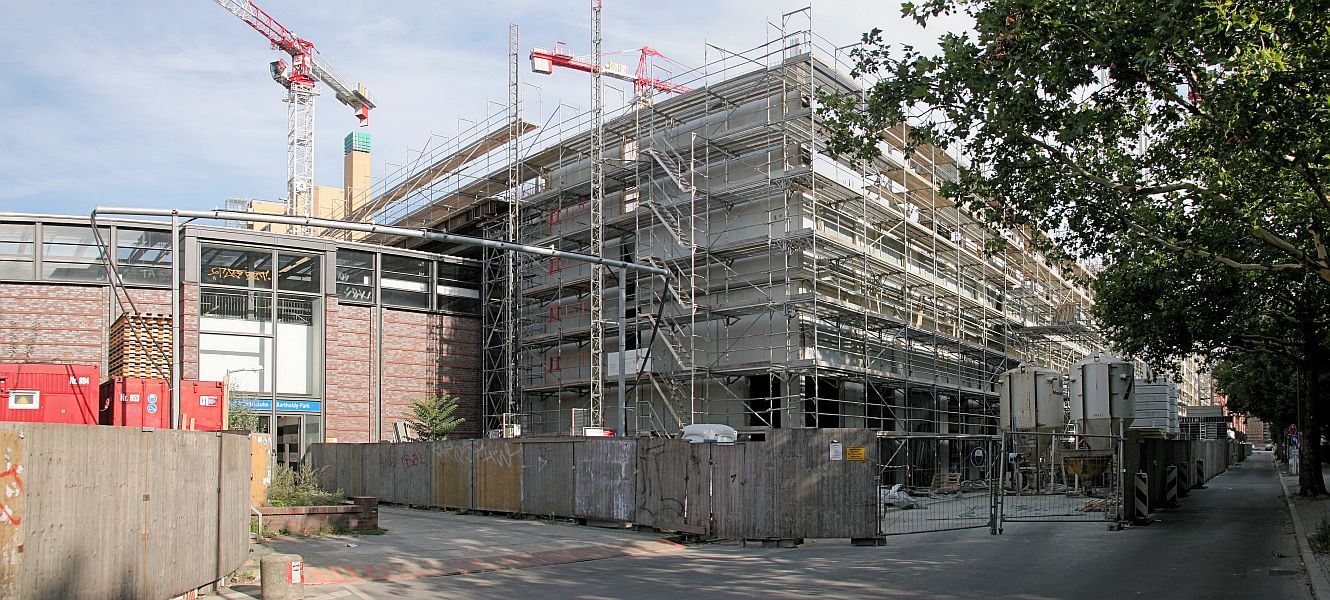 Die östliche Seite des Rohbaus des Scandic-Hotels.