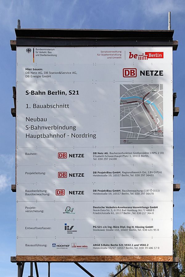 Bauschild an der Ecke Fenn- und Tegeler Straße