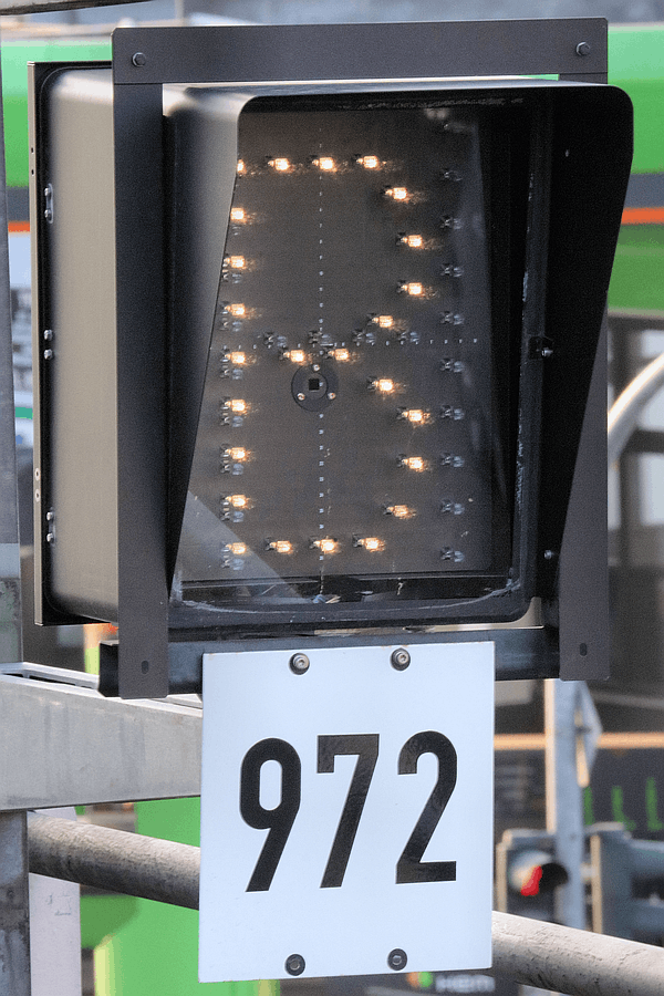 Sie zeigen bei einer zur Zeit einzig möglichen Fahrt Richtung S-Bahnhof Westhafen ein leuchtendes „B“ (also für den S-Bahnhof Beusselstraße, um vermutlich aus Richtung Hauptbahnhof nicht zweimal den gleichen Buchstaben „W“ zeigen zu müssen). Da auch dieses und ein weiteres Signalbild jeweils mit eigenen LEDs auf den Schirmen montiert wurde, lässt sich durch eine Fotomontage auch die zukünftige Fahrtrichtung Hauptbahnhof mit einem „H“ zeigen, hier mit einer alle zwei Sekunden wechselnden Animation. |
