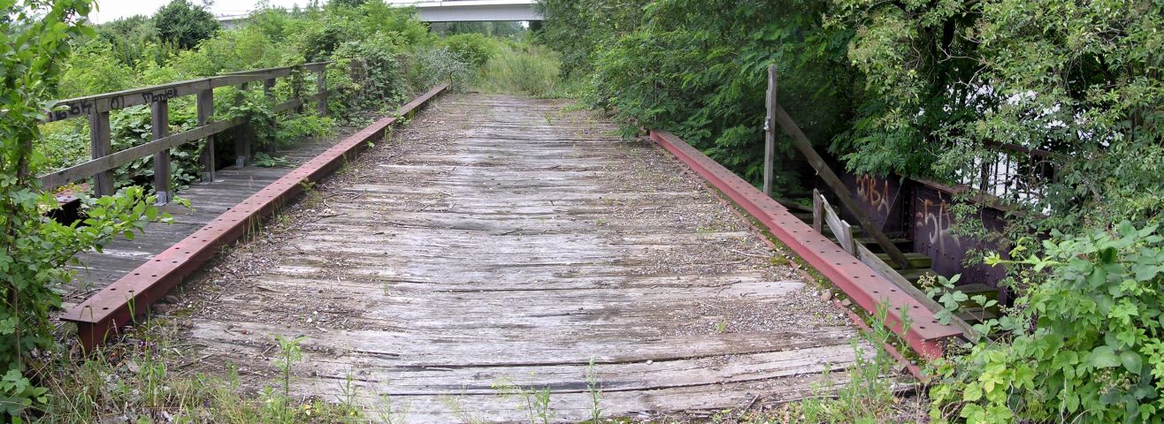 Auf die 1929 gebaute Brücke über einem Kanalisations-Notauslass wurde eine Baubrücke gelegt, wahrscheinlich um schweren Lastfahrzeugen den Zugang zu den Baustellen bei der Ringbahnsanierung zu ermöglichen.