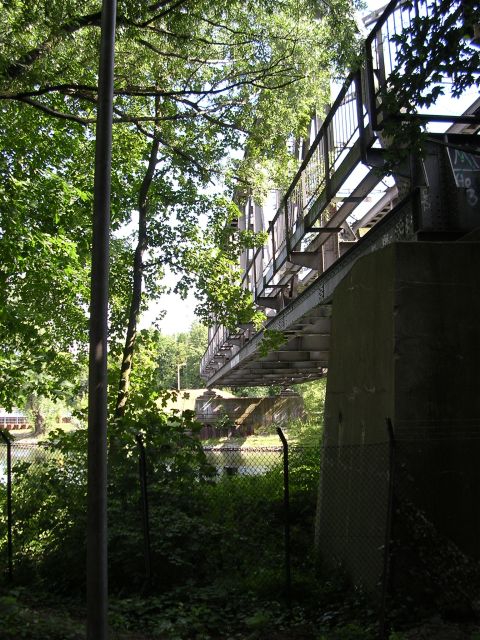Und noch einmal etwas vom Ufer zurückgetreten. Der Zaun markiert den Beginn des Firmengeländes der Firma Siemens.