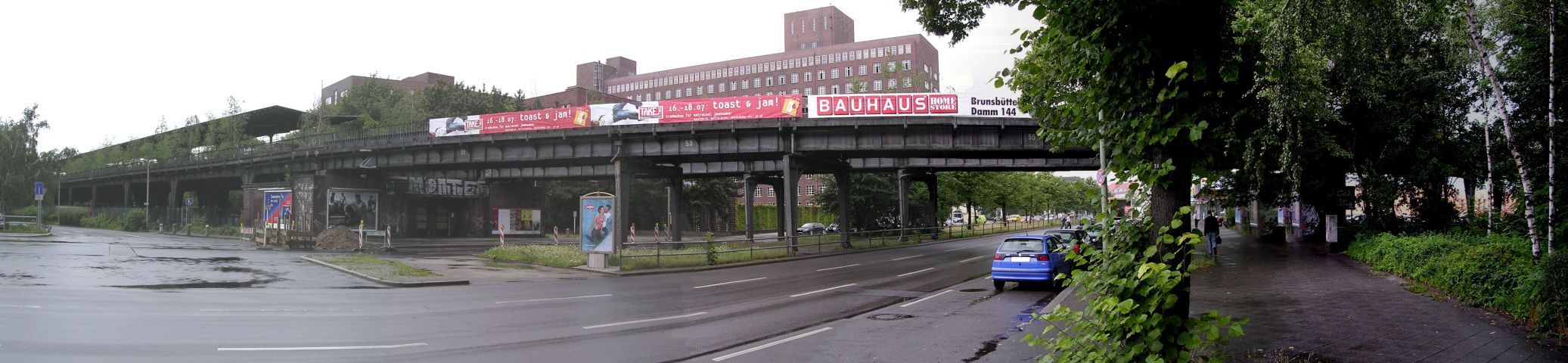 . Links ist der stillgelegte S-Bahnhof Wernerwerk und dahinter das namensgebende „neue” Wernerwerk-Gebäude der Firma Siemens zu sehen (erbaut 1929).