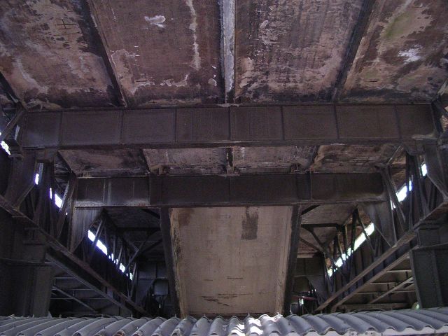 Ein Bild von der Unterseite des S-Bahnhofes Wernerwerk, der Beton zersetzt sich zusehens.