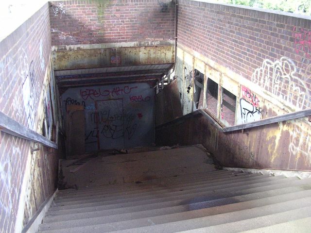 Ein Blick auf die nördliche Zugangstreppe, der Blumenmarkt verbirgt sich hinter einer Sicherheitstür.