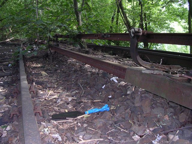 Auf dem Bahndamm legt sich die für eine maximale Geschwindigkeit von 65 km/h ausgelegte Strecke in die Kurve. Hier ist die Überhöhung der Gleise schön zu sehen.