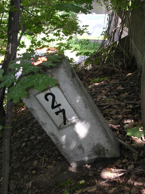 Dieser Kilometerstein steht direkt an der Brücke über dem Quellweg.