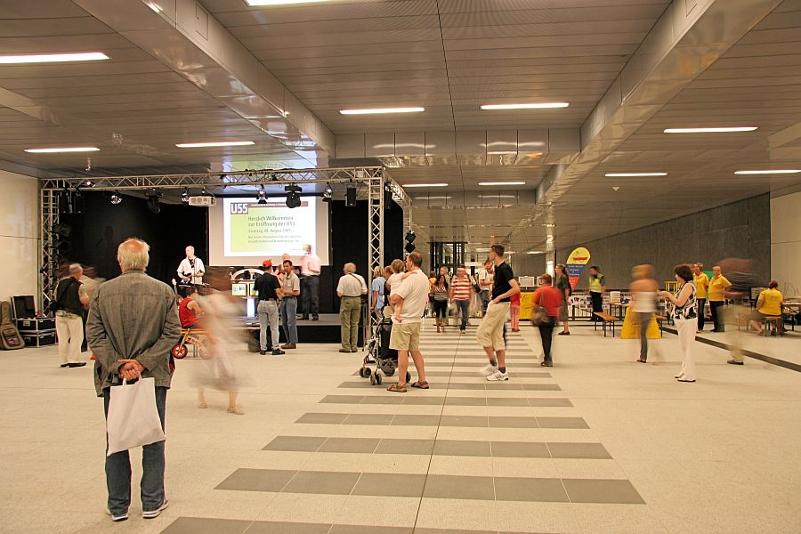 Im nördlichen Zwischengeschoss des U-Bahnhofs Hauptbahnhof war eine Bühne aufgebaut worden, auf der ein wechselndes Programm ablief.