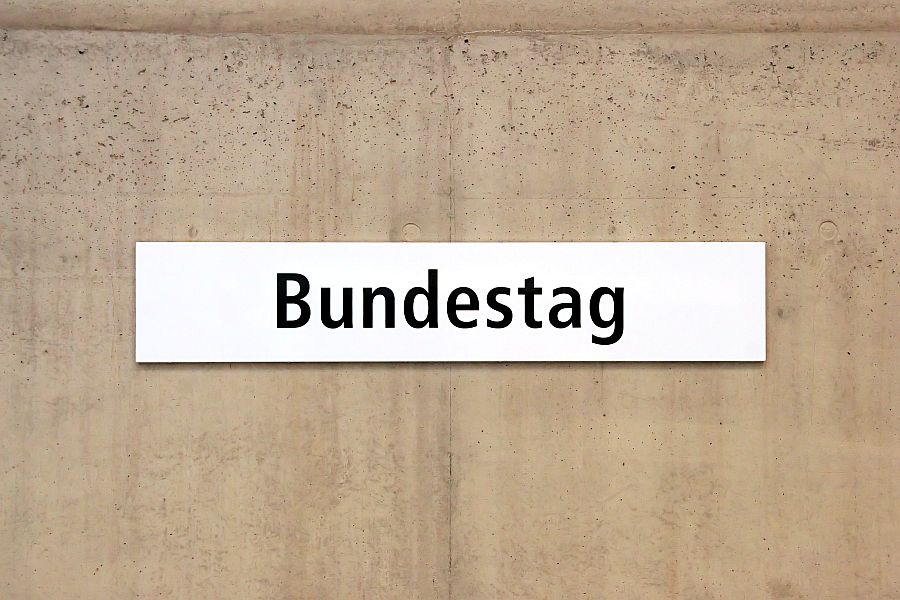 Das schlichte weiße Bahnhofsnamenschild auf Sichtbeton steht im Kontrast zu den anderen aufwendig gestalteten Bahnhofsnamenschildern der Strecke.